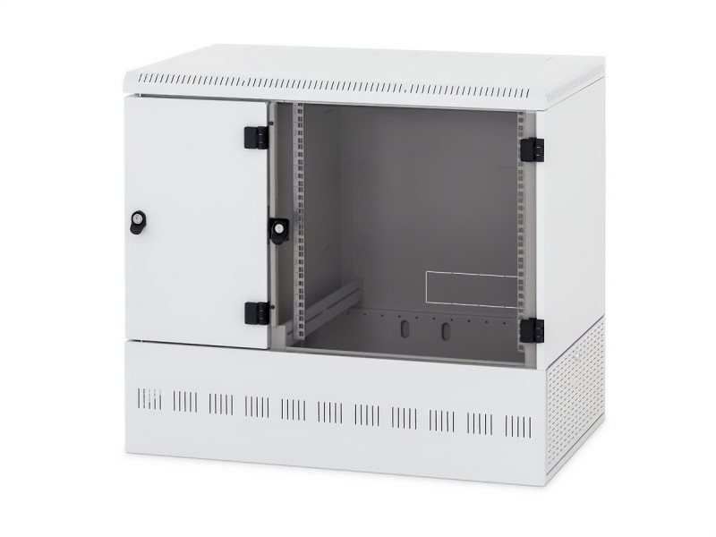 Naturalne chłodzenie poprzez wentylację, dzięki perforacji szkieletu i drzwi bocznych, można wspomóc poprzez zainstalowanie wentylatorów do szaf ściennych (RAX-CH-X07). W przypadku stosowania wentylatorów lub zespołów wentylacyjnych należy uwzględnić zmniejszenie liczby pozycji montażowych dla sprzętu 19” o 1 jednostkę w sekcji nr 1. Oryginalna wersja z serwerem zamontowanym pionowo 2U jest nadal dostępna na zamówienie