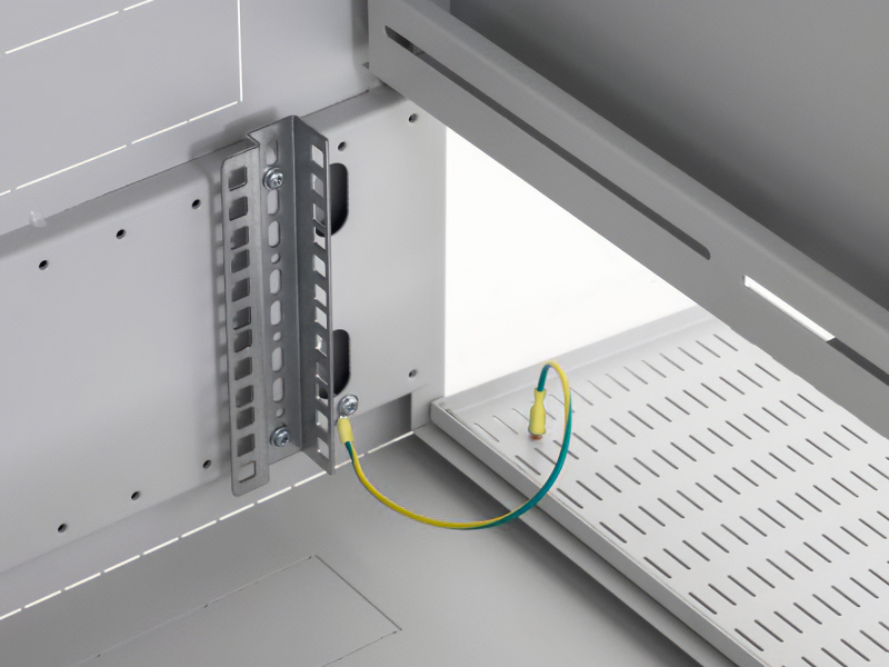 W dwóch sekcjach znajdują się pionowe szyny 19”, które można dowolnie regulować na całej głębokości szafy. W trzeciej sekcji pionowe szyny 19” można regulować na głębokość w określonych pozycjach. Ułatwia to montaż urządzeń i organizację kabli połączeniowych.
